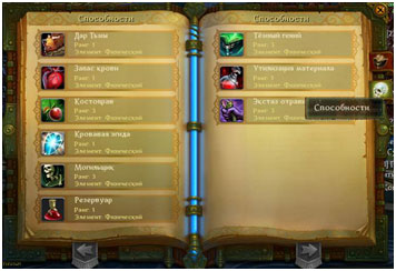 На панели инструментов есть  Книга умений в которой находятся все уже выученные умения и способности. В ней можно посмотреть полное описание каждого из умений, посмотреть ранг умения и перенести на панель для быстрого использования.