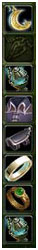 Существенно повысить значение параметров персонажа можно с помощью одежды, оружия и ювелирных украшений. Количество улучшаемых характеристик и их величина зависит от уровня вещи, её качества и уровня руны, которая вставляется в вещь, если в вещи есть подходящий слот для рун. В меню персонажа у каждой характеристики показывается, что именно будет улучшено, какое базовое значение имеет данная характеристика, бонус от талантов, бонус от экипировки, какое действие несет, учитывая все эффекты, и имеет ли данный талант важность для персонажа.
